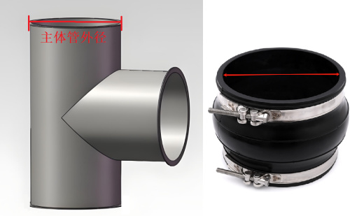 卡箍橡膠接頭的管外徑具體指的是接頭兩端連接管道的外部直徑。