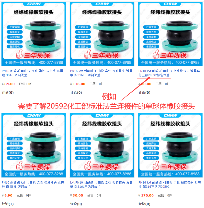 例如需要了解PN10-20592化工部標準法蘭連接的橡膠接頭